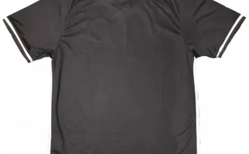 O uniforme destaca tons preto e cinza, com detalhes bem quadriculados e algumas faixas dentro destes quadrados na parte frontal. Na parte traseira, é um preto total com algumas listras brancas nas laterais.