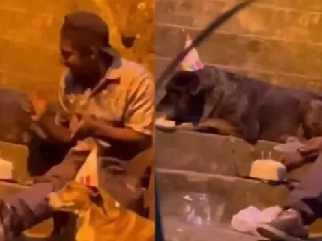 Um morador de rua na Colômbia emocionou o mundo ao ser flagrado comemorando aniversário ao lado de seus dois cachorros.