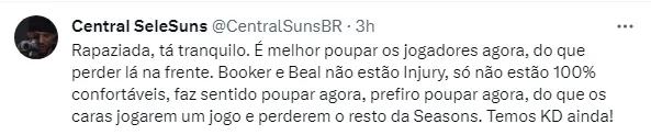 Pelo lado do Suns, o aguardado trio Kevin Durant, Devin Booker e Bradley Beal ainda não fará a sua estreia. Beal, com dores na lombar, é ausência confirmada diante do Warriors. Espera-se que Eric Gordon ou, até mesmo, Grayson Allen, outras novidades desta temporada, sejam os seus prováveis substitutos.