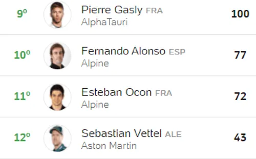 Confiraa classificação daFórmula 1 após a 21ª etapa: