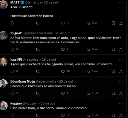 Abel Ferreira já deixou claro que o time precisa reforçar o meio-campo. Aníbal Moreno já tem negociações encaminhadas para fortalecer o elenco do Verdão. Villasanti seria mais uma opção para a posição.