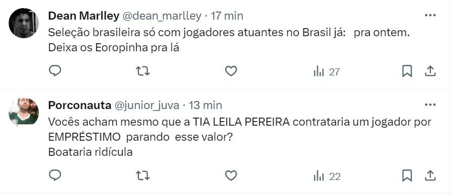 O jogador também soma convocações para a Seleção Brasileira de base. O atacante atua pelo lado direito do campo. Com Tetê fora da realidade do Palmeiras, a presidente Leila Pereira vai ter que buscar outro nome no mercado.