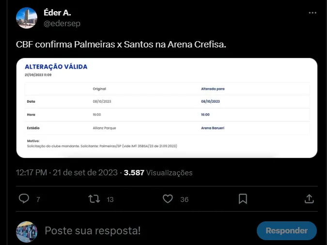 O contrato prevê a modernização da Arena e melhorias no gramado. A empresa de créditos também terá o direito de explorar comercialmente o local. As informações são do jornalista Danilo Lavieri, do UOL Esporte, e por outro lado há um adiantamento de quando o Alviverde vai estrear o estádio como mandante. Será logo em um clássico paulista na corrida pelo título.