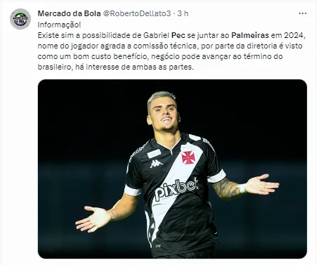 Além desses dois, conforme vídeo publicado por Nicola, em seu canal no YouTube, outros dois reforços serão procurados pelo Alviverde no mercado. Seriam eles: um atacante que atue pelos lados do campo e um zagueiro canhoto.