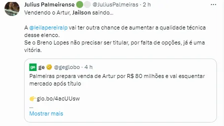 Além da chegada de reforços, a tendência é que algumas saídas aconteçam durante a próxima janela de transferências. O Verdão busca alguns nomes no mercado, mas o elenco terá algumas saídas, em especial de jovens jogadores, que estavam emprestados.