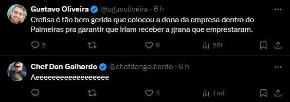 A presidente já colocou dezembro de 2024 como um prazo para que toda a dívida do Palmeiras com a Crefisa seja paga. Caso o Verdão continue com boas campanhas, essa data deve ser cumprida.