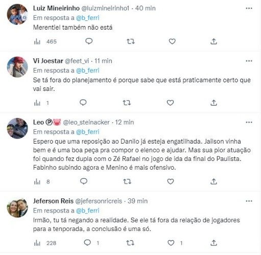 Na prancheta que levantou a polêmica na web, 28 jogadores do Palmeiras estão presentes. Além de Danilo, Merentiel também está de fora. O jornalista Thiago Ferri, do Globo Esporte, cravou que o fato de tais atletas não estarem contabilizados, não crava sua saída definitiva, pois se trata apenas uma sinalização de quem pode deixar o clube.