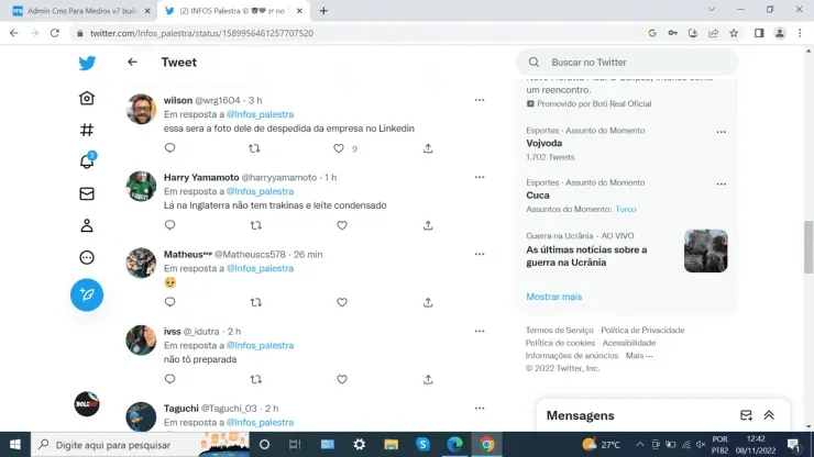 Em sua conta no Instagram, Scarpa publicou uma imagem na entrada da Academia de Futebol com a legenda: “Última semana”. Os comentários dos palmeirenses, em sua grande maioria, focam em pedir para o craque do Campeonato Brasileiro permanecer na próxima temporada, algo que não deve acontecer pela própria vontade do atleta.
