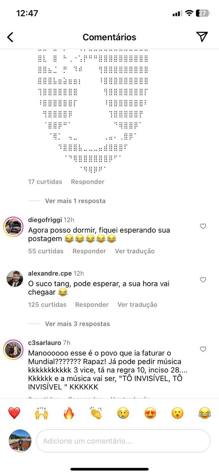 “Tenho nada a vê com isso não hein Urubuzada, eu tomo Tang”! – escreveu na postagem o ex-jogador ao lado de muitos emoticons gargalhando. A torcida do Palmeiras não perdeu tempo e continuou a zoeira com o rival nos comentários do ídolo palmeirense.
