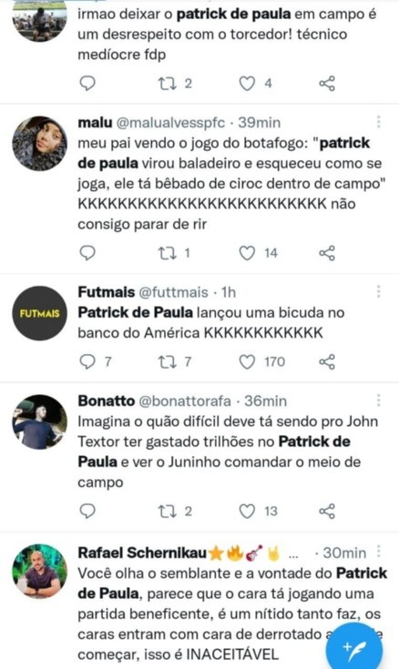 Com a camisa do Alvinegro do Rio de Janeiro, as coisas não avançaram e depois de ser anunciado como a mais cara negociação do Botafogo, não conseguiu mostrar dentro de campo um futebol consistente. Nesta quinta-feira (30), o Bota perdeu de 3 a 0 para o América-MG, em partida válida pela Copa do Brasil e PK foi o alvo escolhido para um muitas críticas da torcida do Bota, que não perdoou e soltou a acidez nas redes sociais.