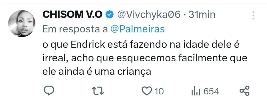 Apesar de matematicamente a vantagem do Palmeiras ser larga e do alviverde ter tornado pouco provável que seja ultrapassado pelos rivais. Endrick se mostrou muito cauteloso em cravar o título para o Clube.