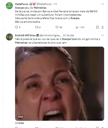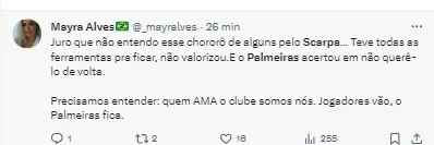 Diante disso, houve muito desgaste entre o Palmeiras e Scarpa, com isso, o Verdão não quis ir atrás dele se tivesse que recontratá-lo novamente, principalmente após essa situação.