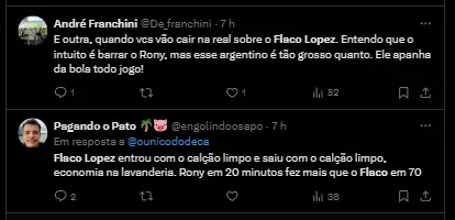 Um dos assuntos que o treinador Abel Ferreira abordou em sua coletiva foi sobre a atuação do centroavante argentino Flaco López. Ele analisou a maneira como o jogador atuou no setor de ataque ao lado dos seus outros dois companheiros do trio ofensivo.