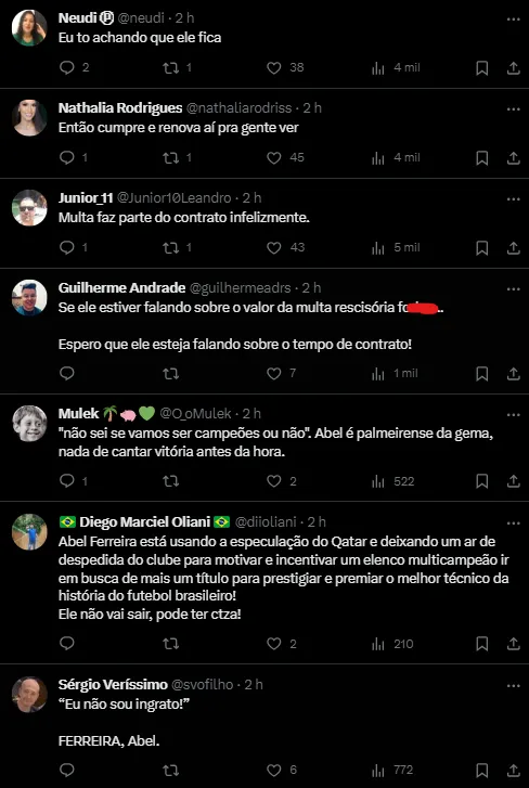 O técnico Abel Ferreira, após a vitória por 1 a 0 sobre o Fluminense, evitou confirmar sua permanência no Palmeiras, alimentando as especulações sobre uma possível mudança para o Al-Sadd, do Catar.