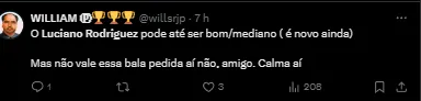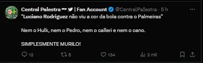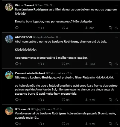 Após o jogo, na entrevista coletiva, mesmo com atuação apagada do atacante, Abel fez questão de elogiá-lo. “Sim, o Luciano é um ótimo jogador. Temos López, Endrick e Rony e são esses que me preocupam, que tenho que ajudar a melhorar”, disse.