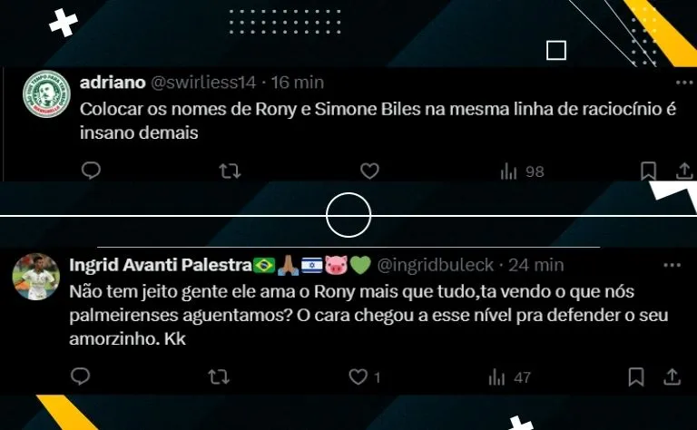 O treinador português chegou a citar a ginasta estadunidense Simone Biles, medalhista de ouro nos Jogos Olímpicos de Paris, para fazer um paralelo com a situação de Rony no Palmeiras. O camisa 10 tem sofrido duras críticas da torcida do Verdão.