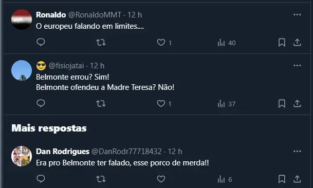 Inclusive, durante uma gravação do momento em que membros do São Paulo cobravam a comissão de arbitragem, Carlos Belmonte, diretor de futebol do Clube do Morumbi, se referiu ao treinador como “português de me…”.