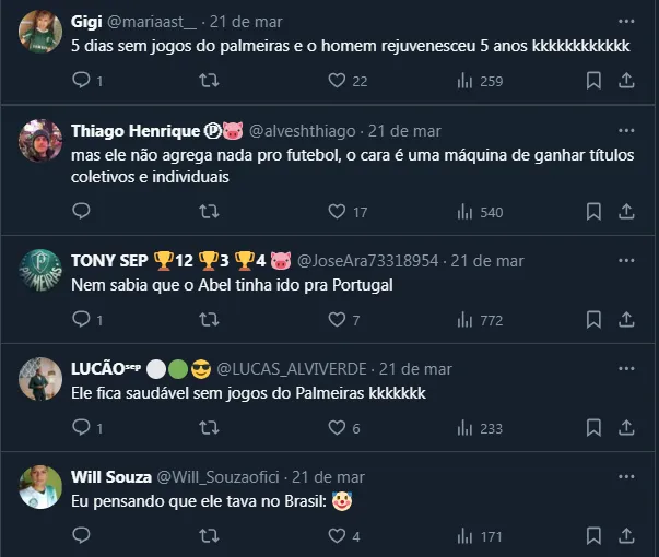 Quer dizer, após ter construído uma relação mais duradoura com o grupo, Abel reduziu o tempo de concentração do time, algo que costuma abrir espaço e tempo no calendário para que os jogadores se dediquem às famílias. O compromisso diante do Novorizontino será no dia 27, às 21h35, no Allianz Parque.