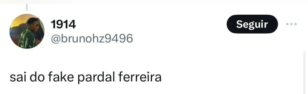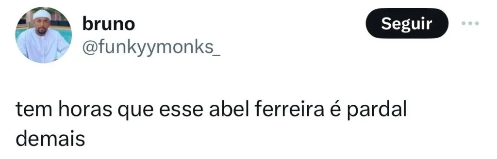 “Então estamos na mesma porque antes do Palmeiras te dar uma carreira eu nunca tinha ouvido falar no seu nome”, disse um torcedor. “Tem horas que esse Abel Ferreira é pardal demais”, afirmou um internauta. Sai do fake, Pardal Ferreira”, se revoltou um membro da torcida.