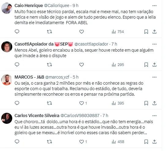 “Chegou a informação de que houve invasão da área no momento em que o Veiga bate o pênalti. Sinceramente, desconheço a regra. Mas a regra da Europa, na última vez que eu li, para o gol ter validade, o goleiro não pode mexer e não pode ter invasão da área. Foi a última vez que eu li, mas não sou eu que tenho que ler. São os árbitros”, afirmou.