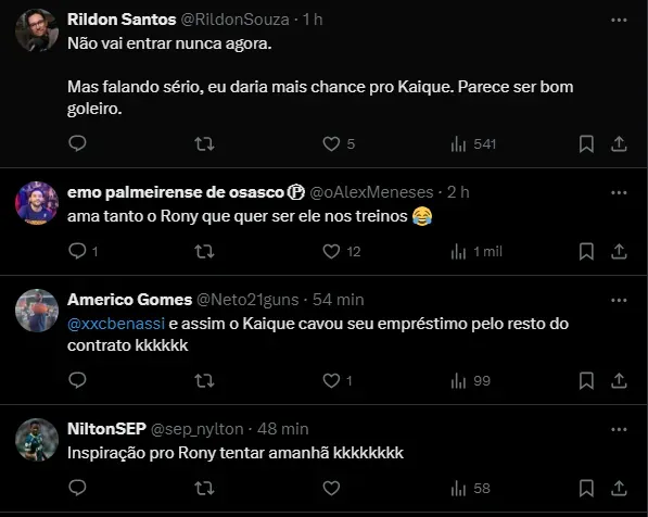 Outros palmeirenses ressaltaram a boa defesa do jovem Kaique no lance. Alguns, inclusive, aproveitaram para ‘cornetar’ o goleiro titular Weverton, que vem falhando nas últimas partidas.