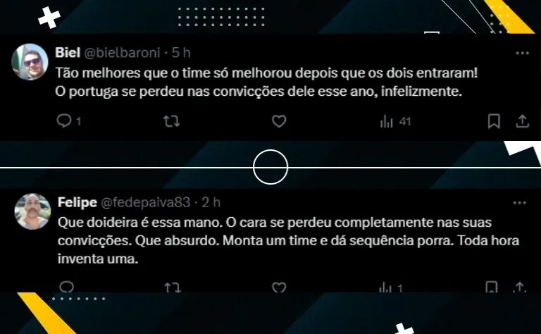 “São dois jogadores que vêm de lesão. A não ser que tenham outras opções. O Felipe foi uma opção minha, o Estêvão também. Achei que tinham melhores jogadores para iniciar o jogo”, afirmou Abel.