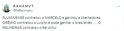 “Artur comprado do Red Bull Bragantino não sai do banco de reservas nas últimas três partidas. Ele acabou se tornando uma espécie de bode expiatório desde a eliminação do Palmeiras na Libertadores da América”, informou.
