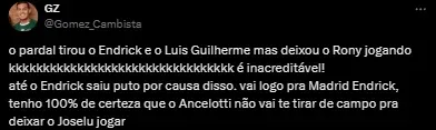 Reação de Endrick repercute na web