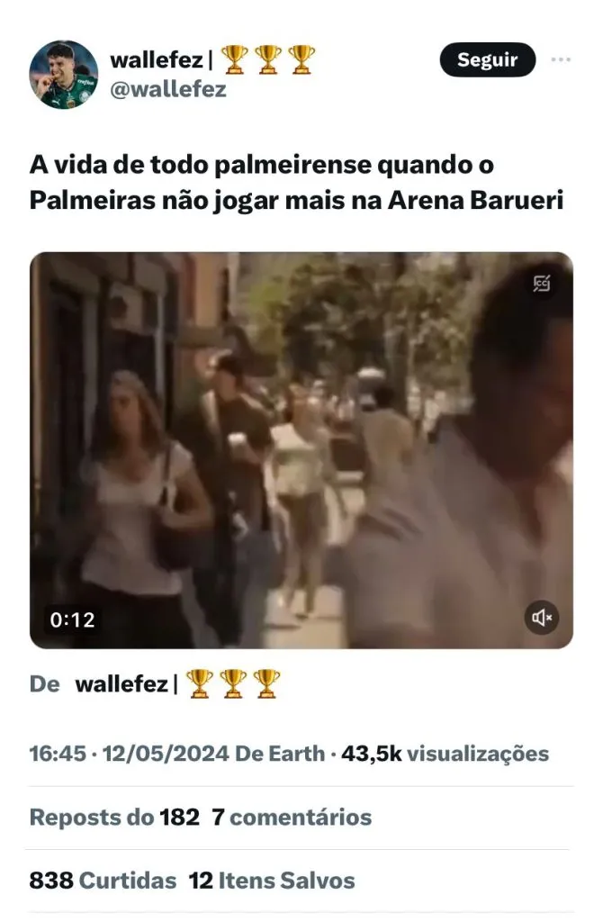 Com isso, recentemente, Abel Ferreira reclamou do fato da deslocação e da falta de atmosfera da equipe jogando longe da torcida. Inclusive, o próximo jogo em casa do Alviverde seria na Arena Barueri, contra o Vasco pelo Brasileirão.