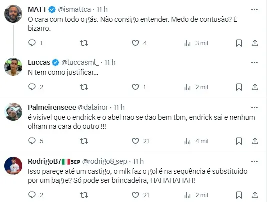Abel foi bastante criticado sobre a insistência em Rony e de deixar Endrick para o final, agora as coisas mudaram, o camisa 9 se tornou titular de foram merecida e a torcida vibrou com isso.