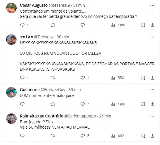 Recentemente, Marcelo Paz, presidente do Fortaleza afirmou que uma pessoa ligada ao Palmeiras de fato havia sondado o jogador e teria entrado em contato com o staff do Leão da Pici.