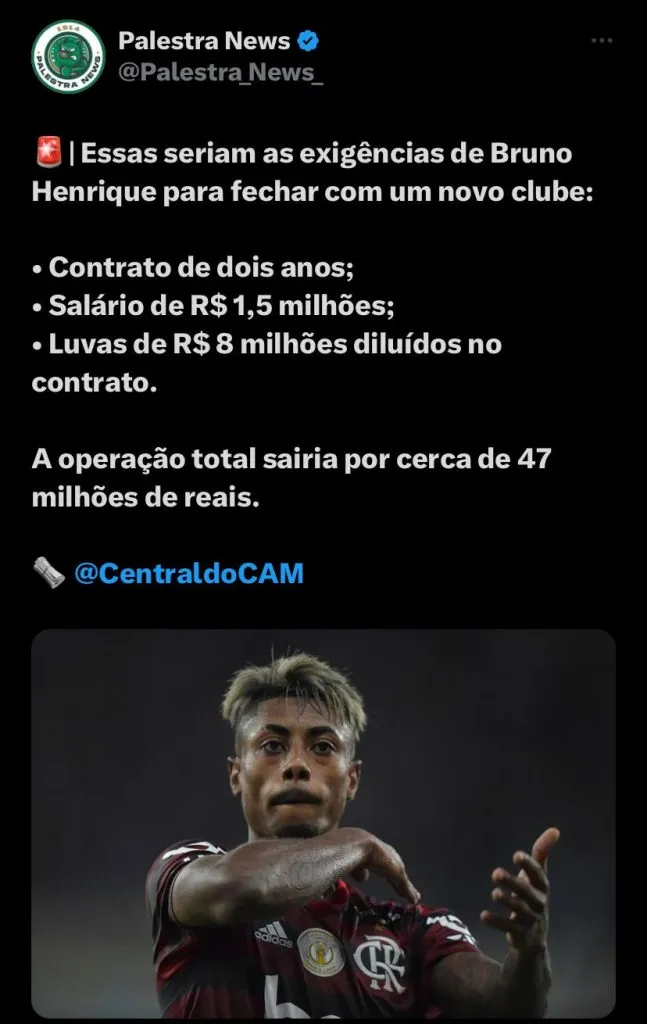 É uma transação bem cara, totalizando um total de R$ 47 milhões, ainda há chances do Flamengo também renovar com o atleta, já que é uma prioridade em vista da história do camisa 27 no time carioca. Diante deste cenário, apesar de todo o interesse do Palmeiras, a Central do Galo voltou a atualizar a situação do jogador flamenguista.