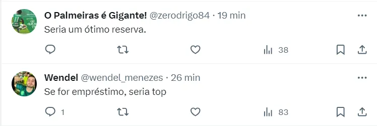 O jogador tem contrato com o Verdão até o final de 2025 e só pretende retornar ao time na próxima temporada caso tenha espaço para jogar. Caso contrário, deve ser negociado com alguma das equipes interessadas.