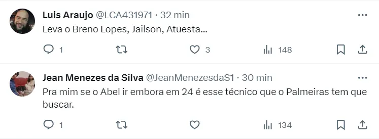 O pedido é do técnico do Juventude, Thiago Carpine, que junto ao seu plantel, garantiu o acesso da equipe para a Série A do Brasileiro em 2024. Ainda de acordo com o site, a diretoria do Verdão conversará com clubes interessados e o estafe do atleta apenas após o fim do Brasileirão.