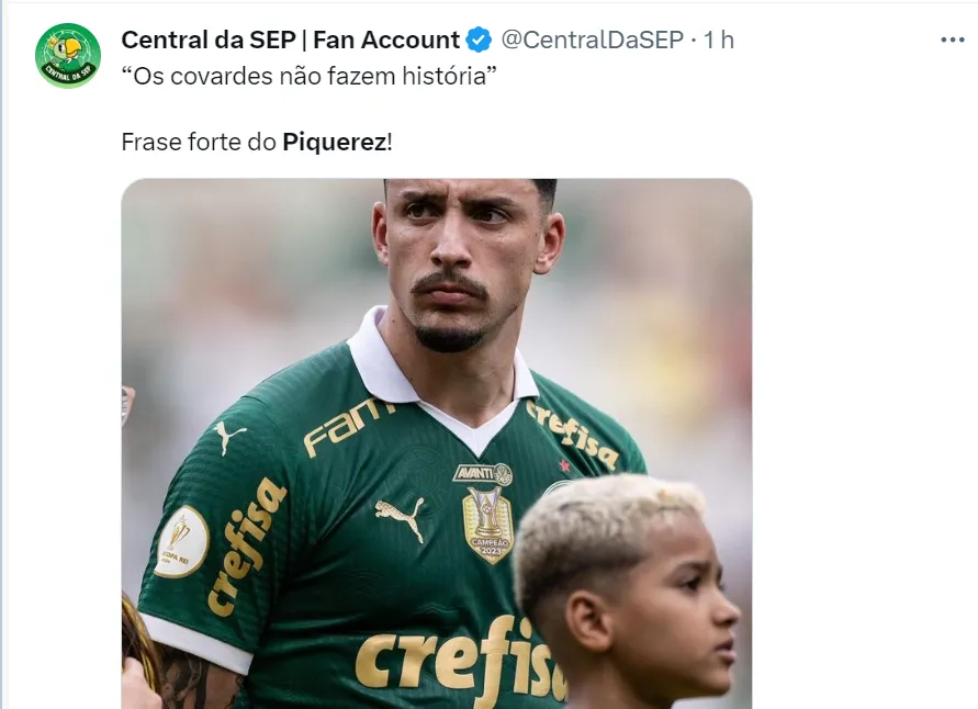Para Piquerez, a noite não deve ter sido fácil. O camisa 22 era um dos melhores cobradores do time alviverde e seu erro decretou o título para o rival. O uruguaio, todavia, não se escondeu e foi até às redes sociais para mostrar força neste momento.