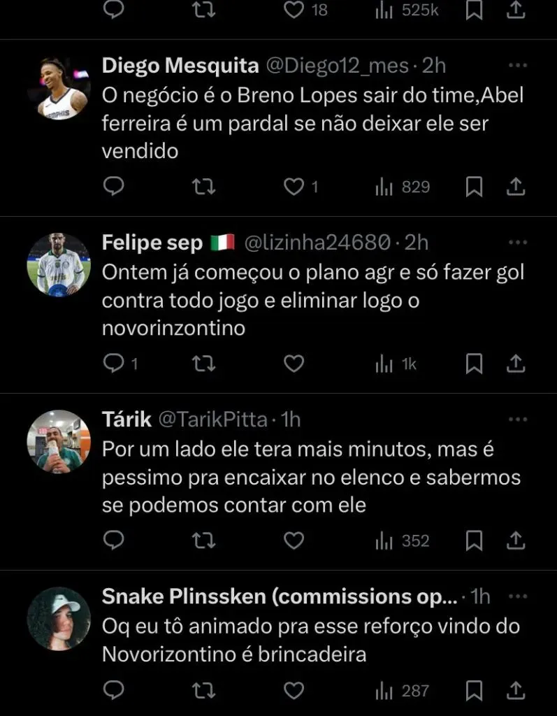 A notícia também foi publicada pelo Bolavip Brasil, o jogador chega como o quinto reforço do Verdão, que contratou Aníbal Moreno, Caio Paulista, Bruno Rodrigues, que está fora por uma lesão.