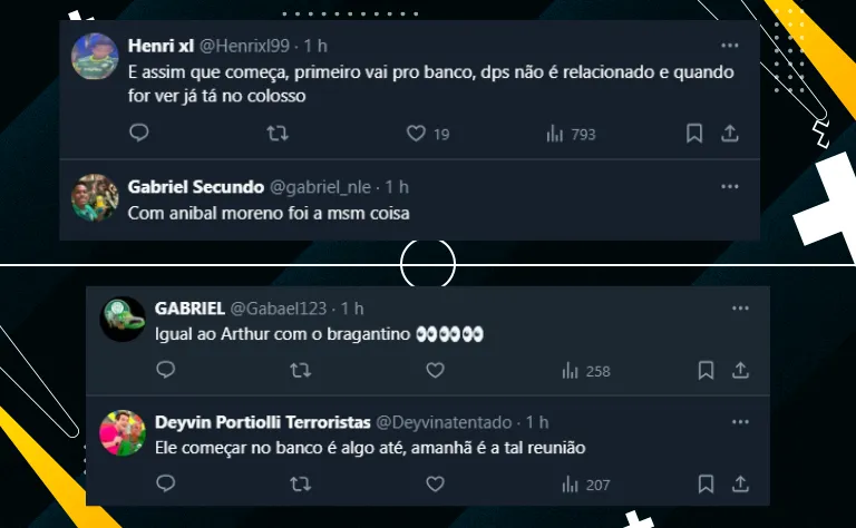 Por fim, apesar do fato dele ser reserva não significar necessariamente um avanço nas negociações com o Palestra, diversos torcedores se animaram com a notícia e comentaram sobre o tema na web. Confira:
