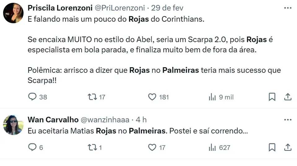Entretanto, não se falou no nome de Matías Rojas até o momento. A presidente Leila Pereira não quer ‘arranhar’ a boa relação com Melo nos bastidores, tampouco o argentino faz parte do perfil de jogador de Abel.