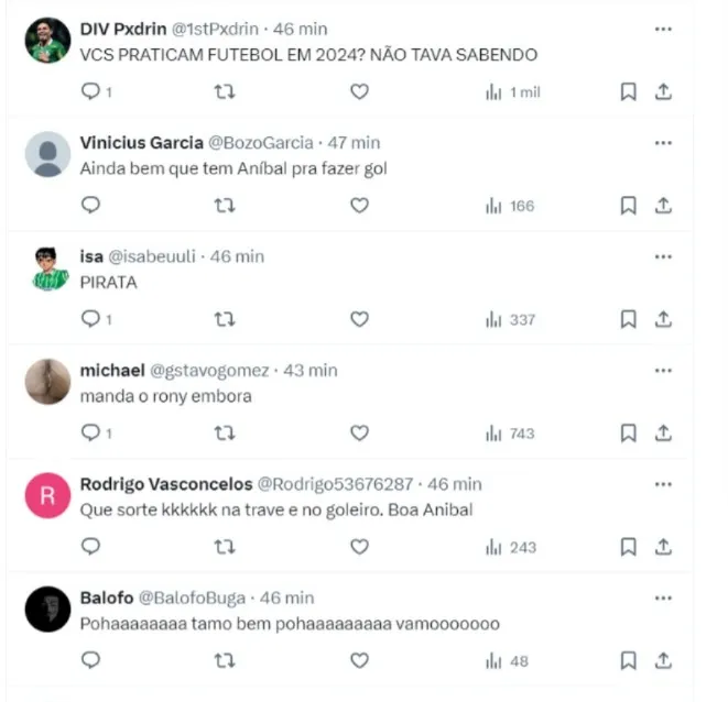Na hora do gol do jovem, Aníbal Moreno teve uma reação bastante engraçada. Os torcedores do Palmeiras também repercutiram o golaço do jogador nas redes sociais – veja a repercussão abaixo.