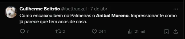 Na última janela de transferências, o Palmeiras realizou quatro contratações: Caio Paulista, Bruno Rodrigues, Lázaro e Aníbal Moreno. O argentino de 24 anos é considerado, por boa parte dos torcedores, a melhor contratação realizada pela equipe.