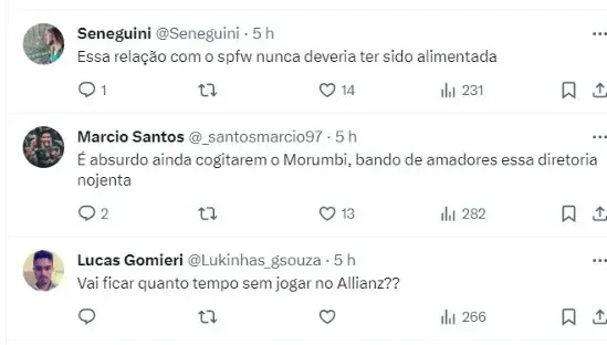 O técnico português disse que ainda quando chegou no clube, não havia essa situação com o gramado. Abel ainda cobrou que uma manutenção por conta dos shows que o estádio recebe.