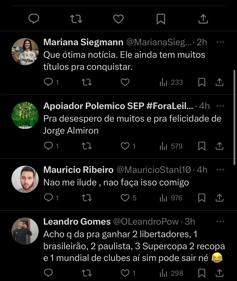 A intenção inicial era de ter Abel até 2027, algo que partiu da presidente Leila Pereira. No entanto, com o ‘desgaste’ do português no futebol brasileiro, o contrato será só por mais um ano.
