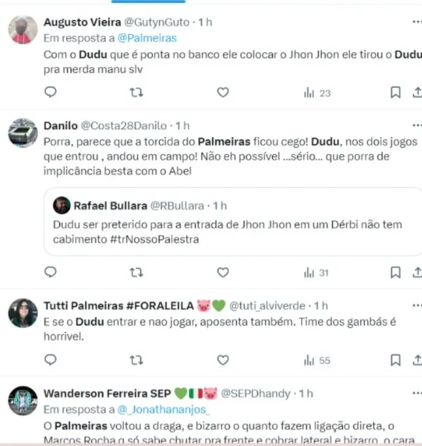 Dudu ficou no Palmeiras devido pressão da torcida, mas esqueceu que a torcida não vai renovar o contrato dele e vai ser desvalorizado caso haja uma renovação de contrato“, disse outro torcedor.