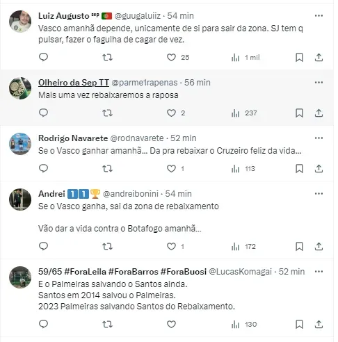 Pensando na possibilidade, a torcida alviverde relembrou da situação e mencionou nas redes sociais daquela ocasião. Caso isso ocorra, será uma situação um tanto curiosa na competição nacional.