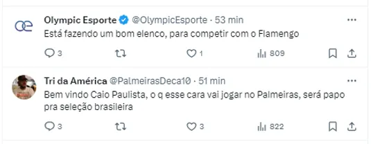 As conversas seguem em andamento, porém, o Palmeiras segue tratando com o Fluminense, que é o detentor dos direitos do atleta. Caio estava no São Paulo por empréstimo e por bases salariais não chegou a um acerto.