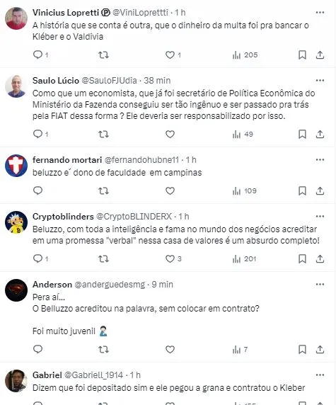 Lavieri foi além em sua apuração e foi buscar no passado a raiz do problema. O jornalista apontou que quando aconteciam as movimentações para a troca do patrocinador, a Fiat chegou a depositar R$ 7 milhões para que a multa fosse paga, porém, a gestão de Belluzzo não fez o repasse, como o próprio ex-presidente confirmou.