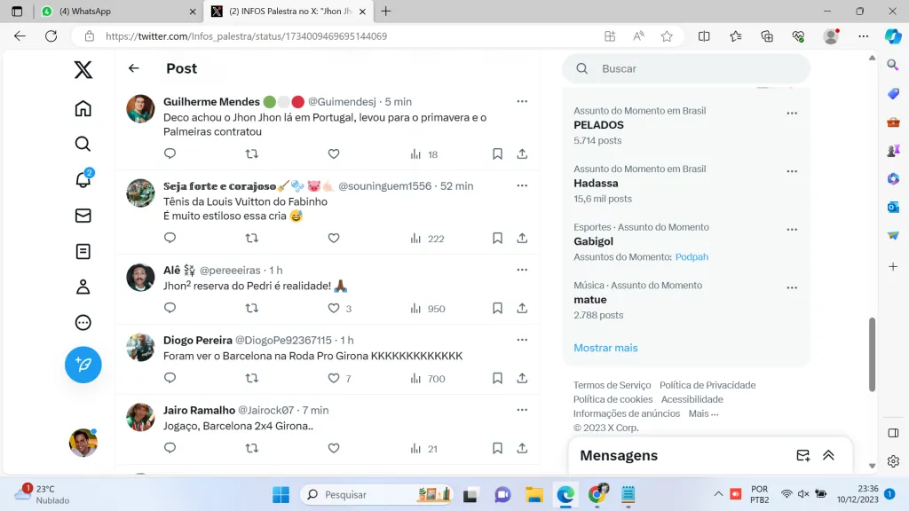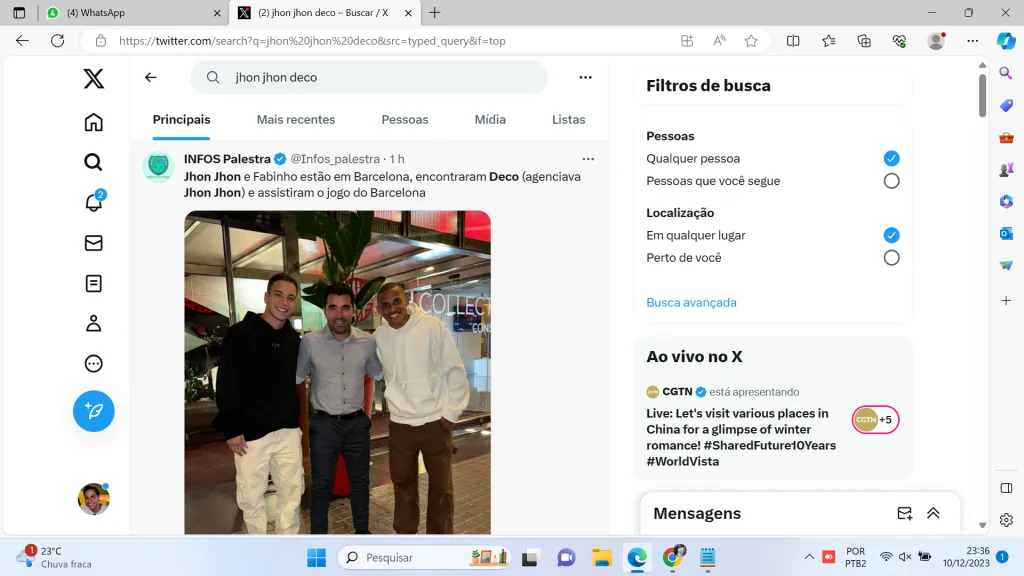 O colega Luciano Henrique, setorista do Atlético-GO, informou, há pouco, que o Dragão fez proposta por Jhon Jhon em 2024 para vir por empréstimo.