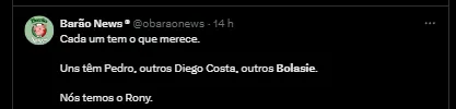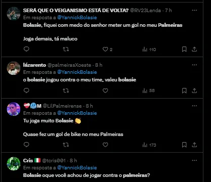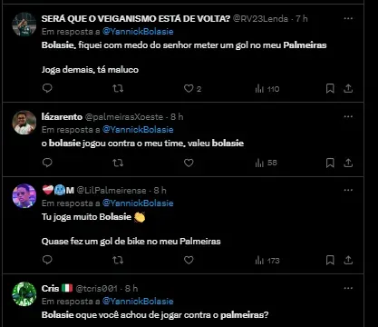 Depois do jogo, Yannick Bolasie, jogador badalado do Tigre, com longa carreira europeia, se manifestou sobre a derrota para a equipe comandante pelo técnico português Abel Ferreira.