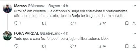 “Felizmente nossos jogadores sabem o que trabalhamos dentro do clube e sabem lidar com o que é o 8 e 80 do futebol brasileiro. O Borja aqui não deu nada, foi trucidado pelos nossos torcedores, está no River (Plate) e bem”, afirmou Abel, sobre o colombiano que rendeu um bom dinheiro ao Palmeiras.