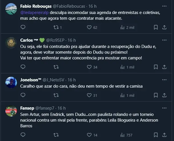 Entretanto, embora a lesão de Bruno Rodrigues tenha pegado muitos de surpresa, a tendência é que o Verdão vá ao mercado em busca de mais nomes para o ataque, até por conta da saída de Endrick no meio da temporada.